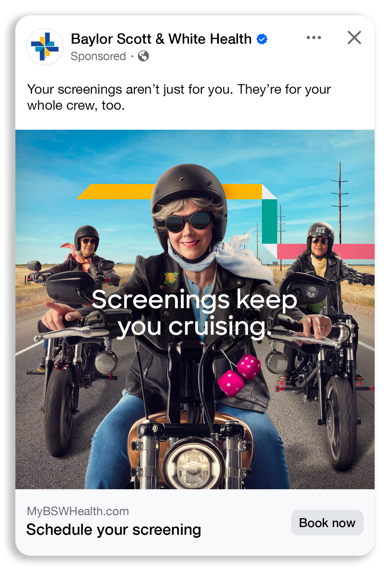 Baylor Scott & White is the largest nonprofit healthcare system in Texas. But they’d rather be patient-first partners rather than a big, scary authority hiding behind call centers and paperwork. That’s why one of their messaging focuses was Wellness: encouraging check-ups, screenings, and preventative health and maintenance.